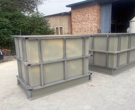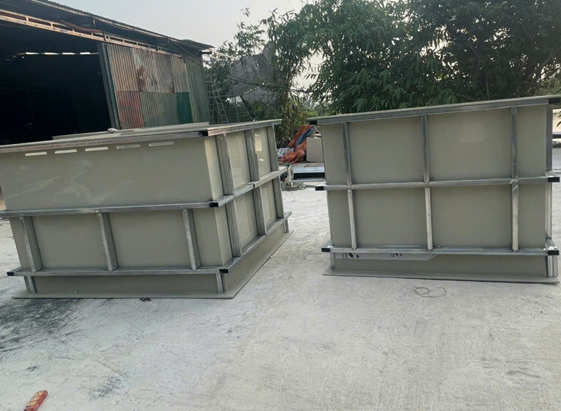 - Bên ngoài Bể nhựa PE PP được ốp thêm thép hộp có kích thước 50*100mm hoặc 100*100mm dày 3mm tăng cường độ cứng cho Bể Nhựa PE PP.